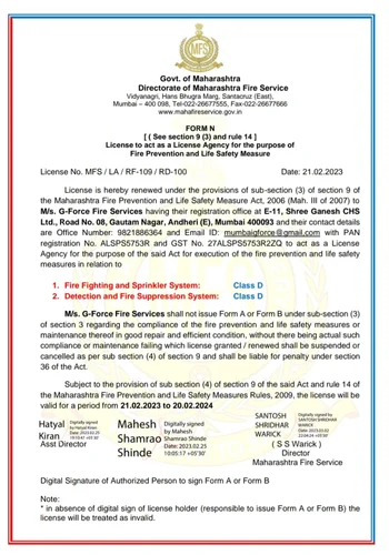 Government‑certified A‑Class fire‑fighting license contractor, authorised to design, install and maintain comprehensive fire protection systems for complex facilities. Our accreditation demonstrates full compliance with statutory fire safety norms and the capability to execute high‑risk, mission‑critical projects safely and reliably.